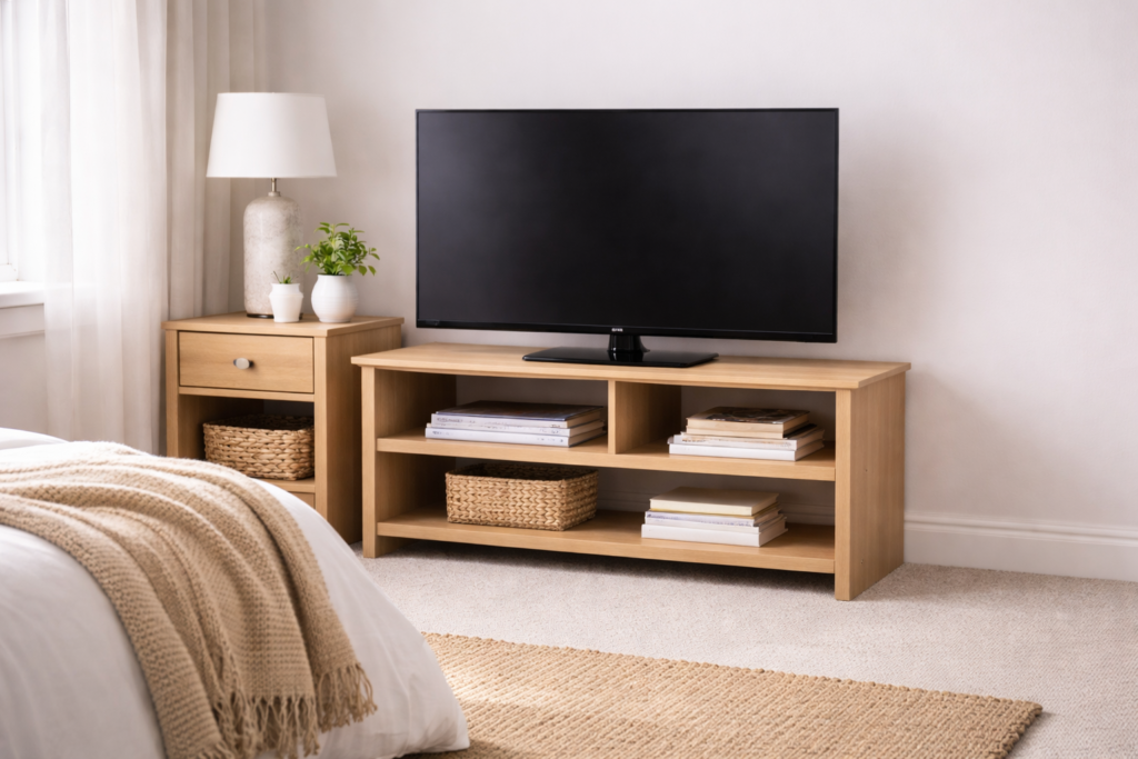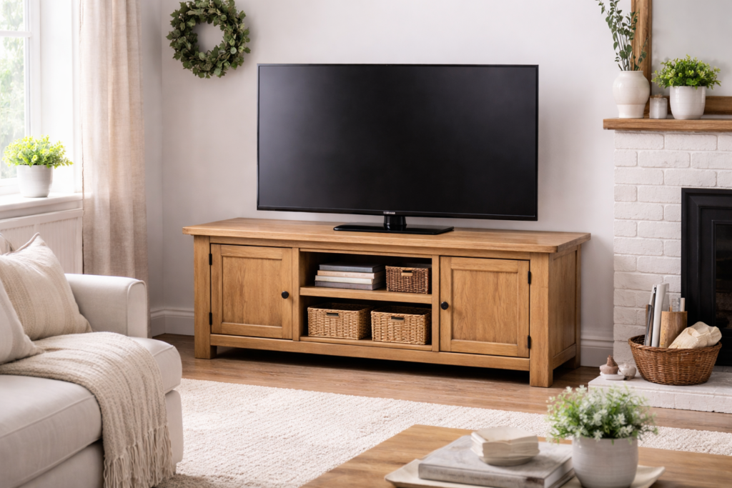 Real wood TV stands offer a more premium feel and long-term durability. They’re perfect if you want your furniture to last and fit into a more traditional or high-end living space.